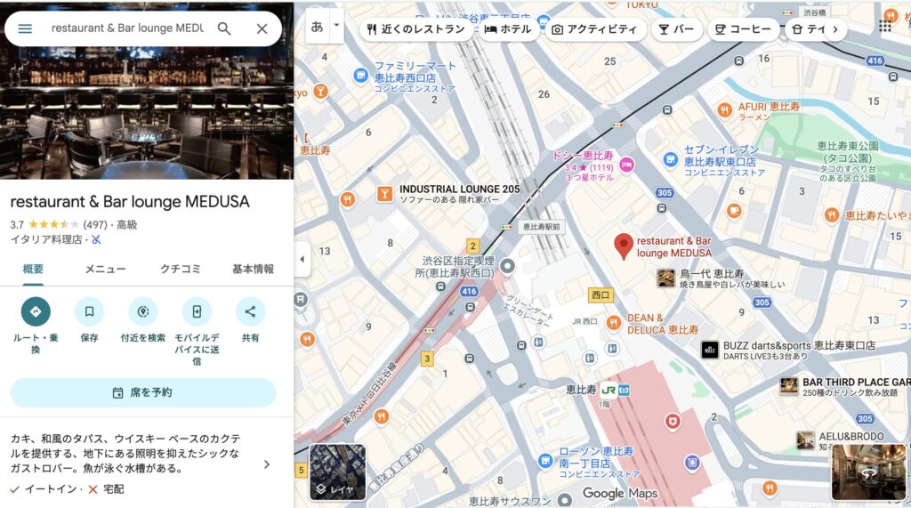 • 恵比寿:道でのアプローチが最強、最後はBar Medusa