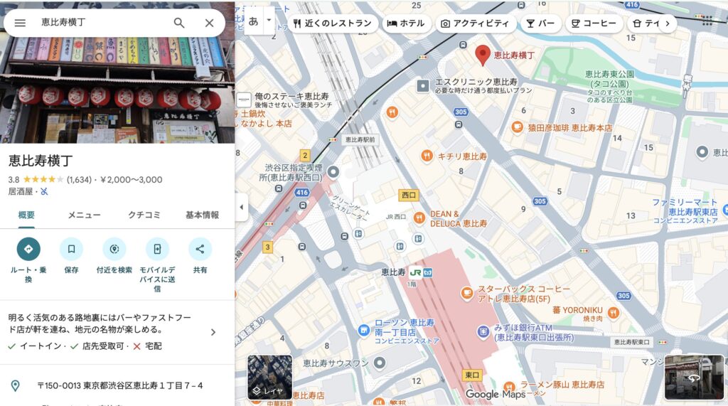 恵比寿はカジュアルなお店とディープなお店が混在している。